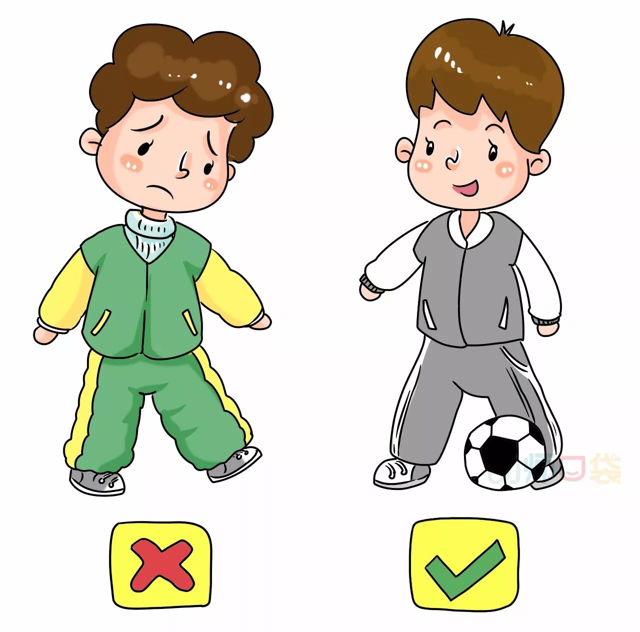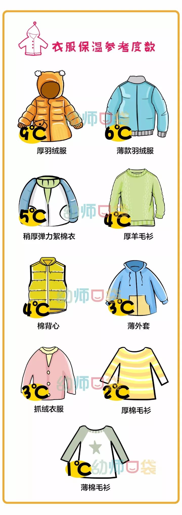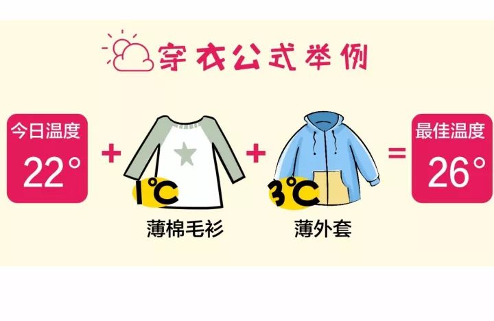 如果实在不知道应该怎样穿,就记住我们之前分享的穿衣法则的口诀:气温+衣服增温=26°C,家长们可以根据自家孩子情况适当为孩子们增减衣物。