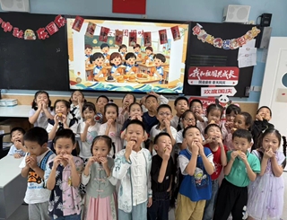 当爱国的热血尚未平息,中秋的温情便悄然登场。“你们知道哪些中秋民俗?”老师的提问引发了同学们的热烈讨论。大家纷纷举手分享,课堂瞬间变成“民俗小课堂”。最令人期待的“吃月饼、猜灯谜”环节到来时,教室里满是欢呼。在欢声笑语中,大家品尝着月饼,猜着灯谜,感受着中秋“团圆”的意义。